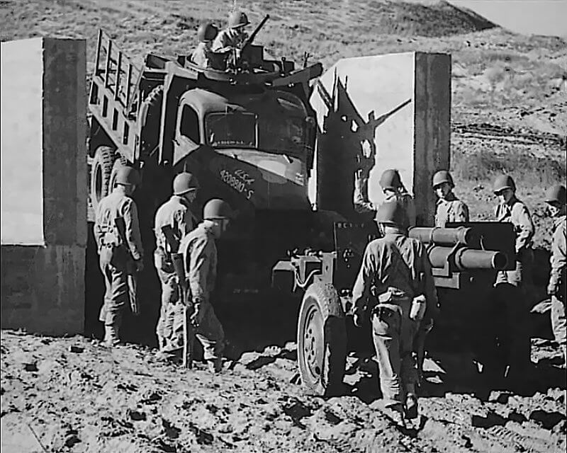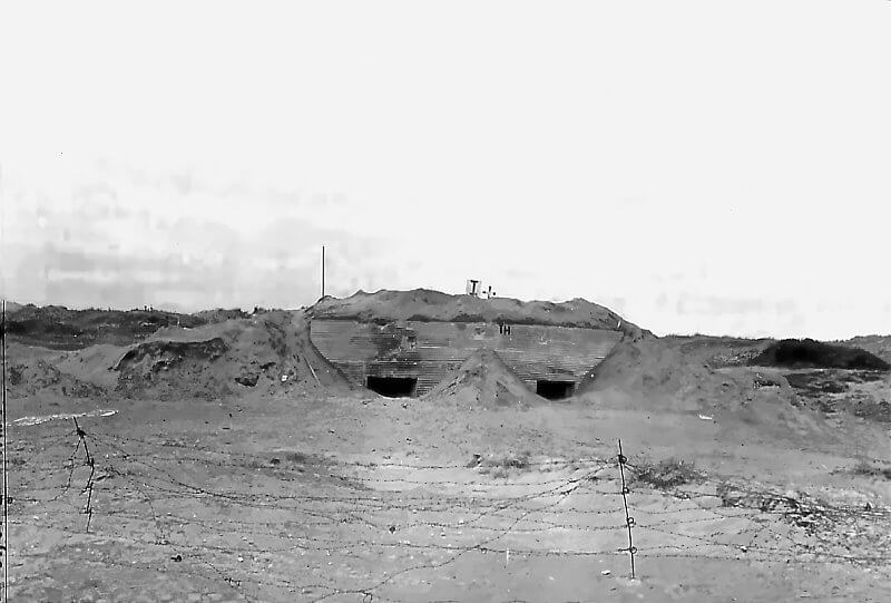 Area C covers the central dunes of Braunton Burrows. It contains several live-fire ranges and mock pillboxes for infantry weapons training. A large “rocket wall” of concrete is built as a backstop for bazooka practice. Soldiers fire M1 rocket launchers at painted bullseyes on the wall to improve accuracy and confidence. Scattered through the dunes are heavy concrete “faces” with painted embrasures, representing pillboxes. These are used repeatedly for gunnery drills and demolitions. Wooden mock pillboxes prove too fragile, as trainees continually demolish them, so engineers adopt permanent concrete targets that withstand repeated blasts.