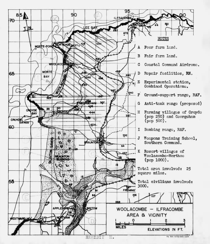 Each of the five Operation Overlord Assault Force’s is ideally to have two practice areas. Winter and spring training will be hampered by rough seas. By having two beaches facing in different directions, bad weather may close one but spare the other. A single area cannot suffice for an entire Assault Force. At best, it might allow battalion-scale rehearsals, or a brigade at most, but six battalions or more cannot train together in such space.