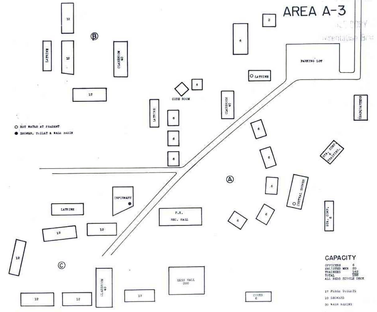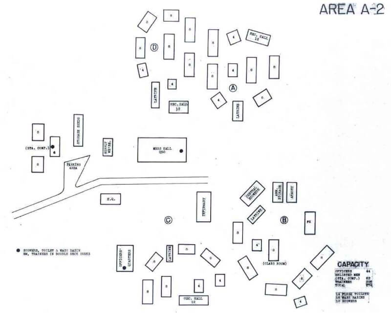 The southern and western sections of Chopawamsic Park are designated as Area A, forming the primary training ground for Office of Strategic Services Special Operations and Operational Groups . Several of the existing summer cabin camps are repurposed for military use: Cabin Camp 2 becomes Area A-2, Cabin Camp 3 is redesignated Area A-3, the former Civilian Conservation Corps camp becomes Area A-4, and Cabin Camp 5 is named Area A-5.