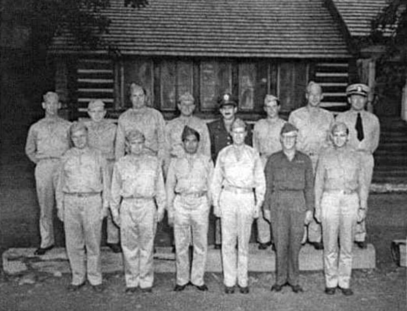 Captain William H. Parkin – Instructor, Lieutenant Frank Gleason – Instructor, Lieutenant Charles Applegate – Instructor, Lieutenant Elmer Harris – Instructor, Captain Rex Kessler – Medical Officer, Unknown officer, Captain Jerry Sage – Instructor, Special Operations Branch & Executive Officer, Possibly Commander Vanderbilt, United States Naval Reserve – Visitor