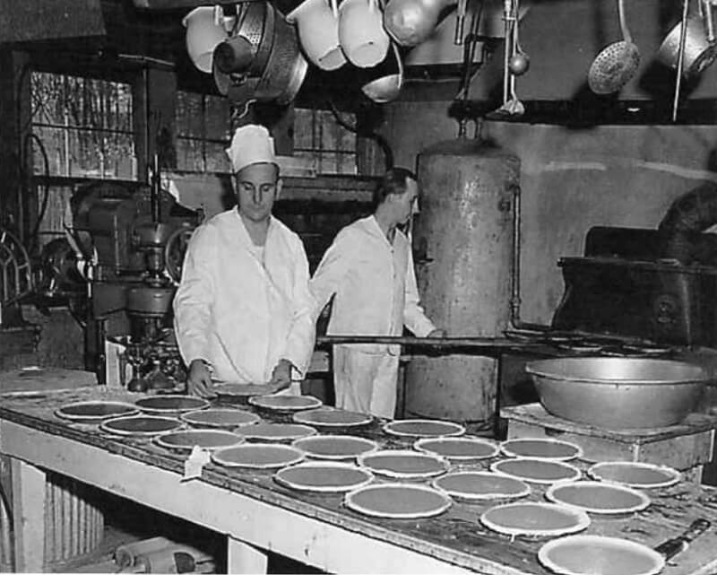 The physical layout of the Area C camps mirrors those in the western part of the park: clusters of rustic cabins are grouped around a lodge, dining hall, and office. The Office of Strategic Services quickly insulates buildings for year-round use and upgrades the kitchens in 1943, adding a 1,900-litre hot water tank and heater, gas ranges, a commercial-grade electric baking oven, and steam tables. New electric equipment is also installed, including coffee grinders, urns, meat slicers, food mixers, and a powered dishwashing machine. A swimming pool is constructed in the summer of 1944, supporting waterborne training.