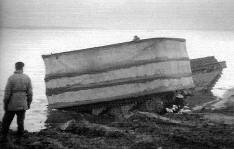 In 1940 Hungarian engineer, Nicholas Straussler, creates a workable solution. He has long experience designing armoured vehicles. His new method allows almost any tank, including full-sized battle tanks, to float. The design uses a collapsible canvas screen mounted around the hull. When raised, the screen stands high enough to create the displacement needed for flotation. Stability comes from thirty-six airtight pillars around the screen, held upright by folding metal supports. Straussler also introduces a steering system driven from the tank’s gearbox. This powers propellers mounted at the rear. The result is a tank that can swim to shore and then fight by lowering its canvas screen.