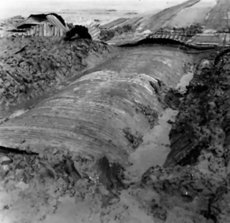 FLAIL TANKS (H 37418) Original wartime caption: Effect of Chruchill charge split top welding. Copyright: ý IWM. Original Source: http://www.iwm.org.uk/collections/item/object/205509210