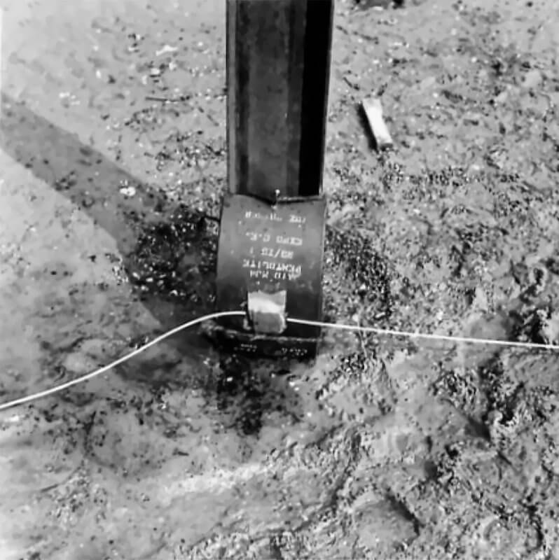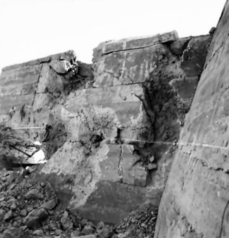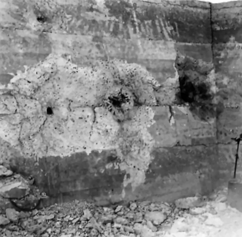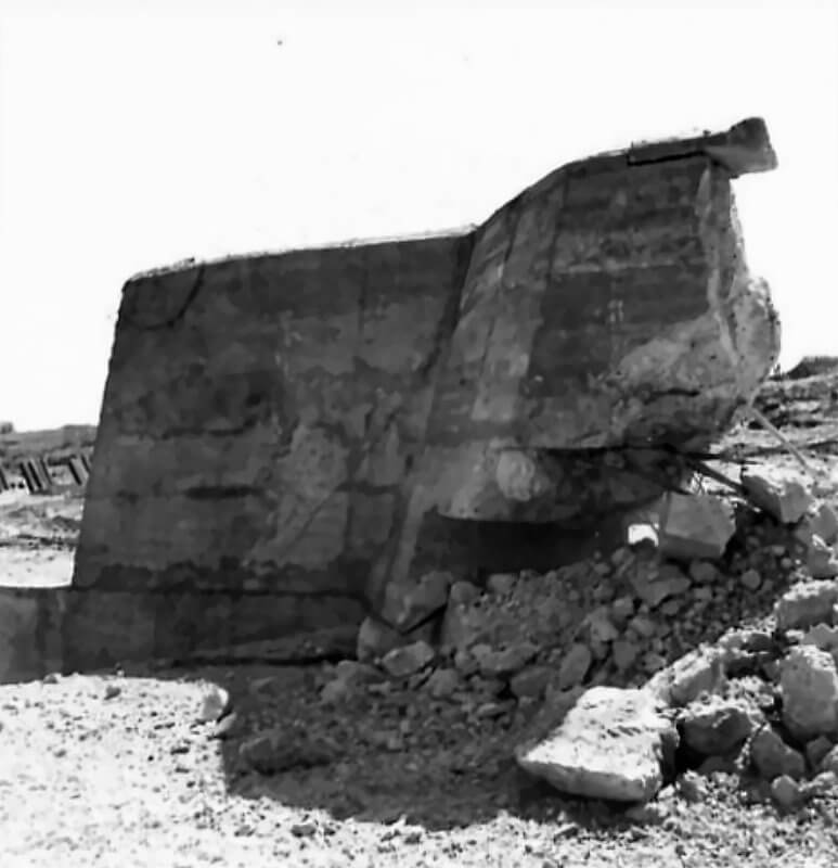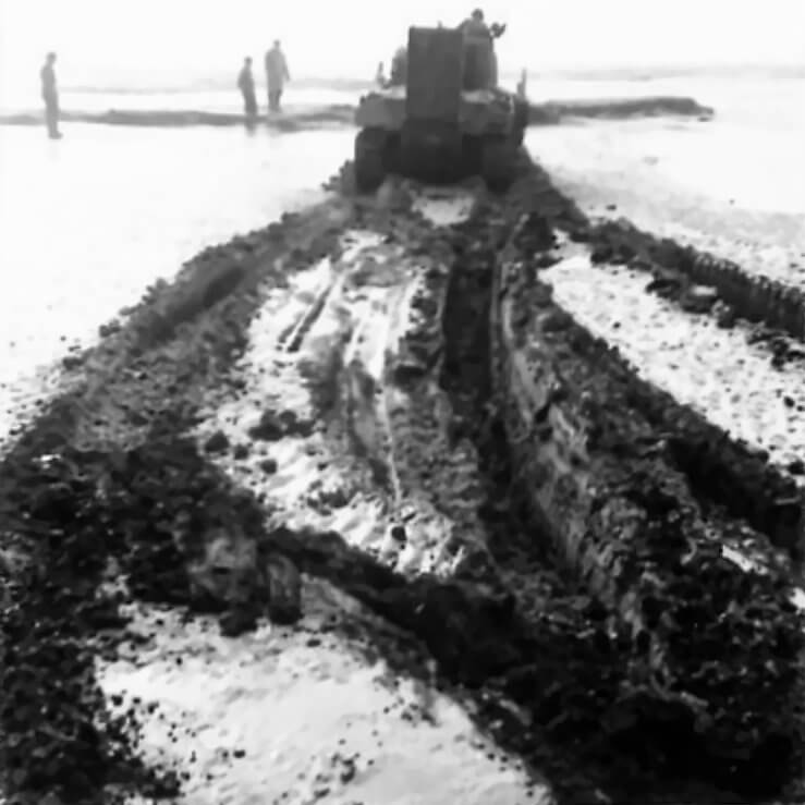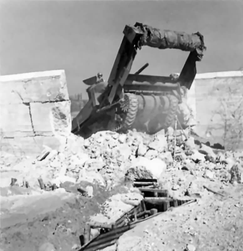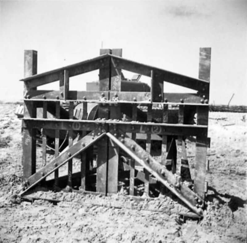 FLAIL TANKS (H 37421) Original wartime caption: 75 mm Shot at Tetrahedra result. Copyright: ý IWM. Original Source: http://www.iwm.org.uk/collections/item/object/205509213