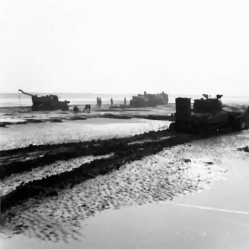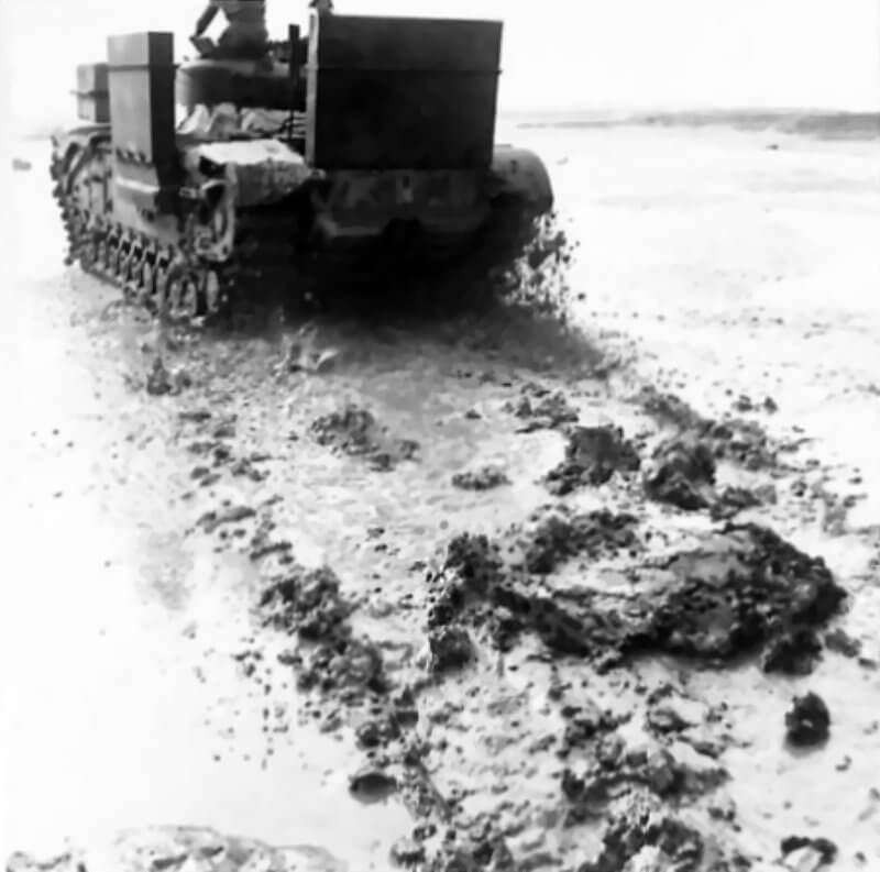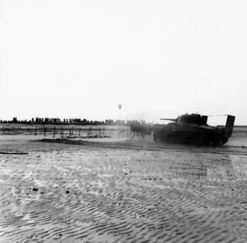 FLAIL TANKS (H 37409) Original wartime caption: Track of Sherman Copyright: ý IWM. Original Source: http://www.iwm.org.uk/collections/item/object/205509203