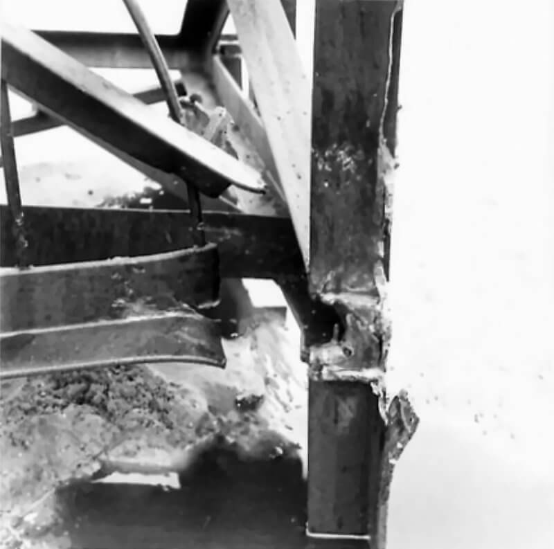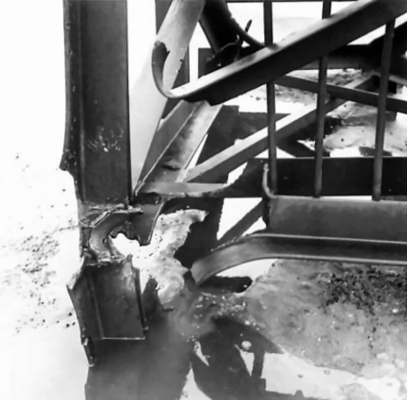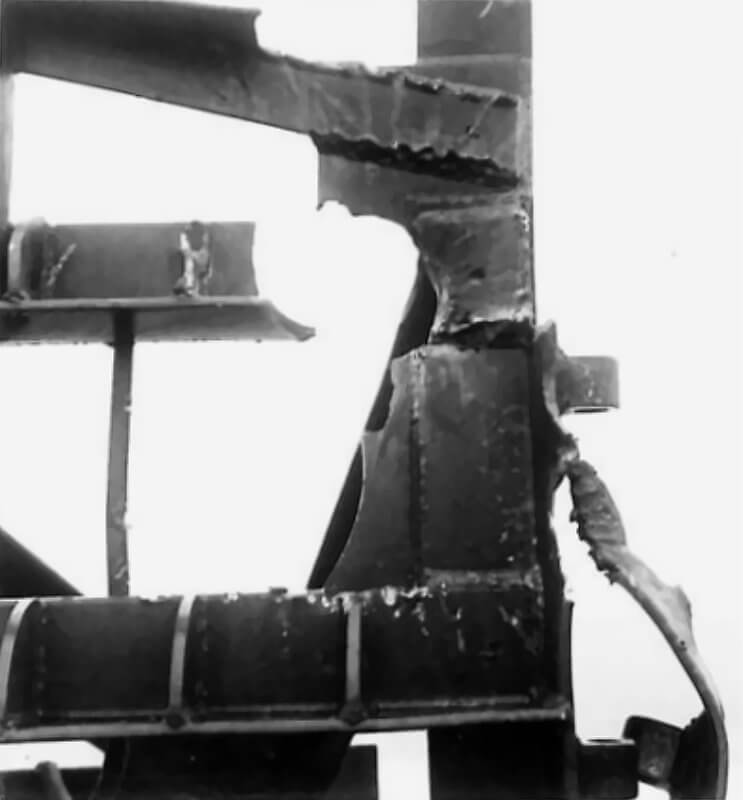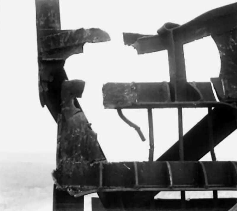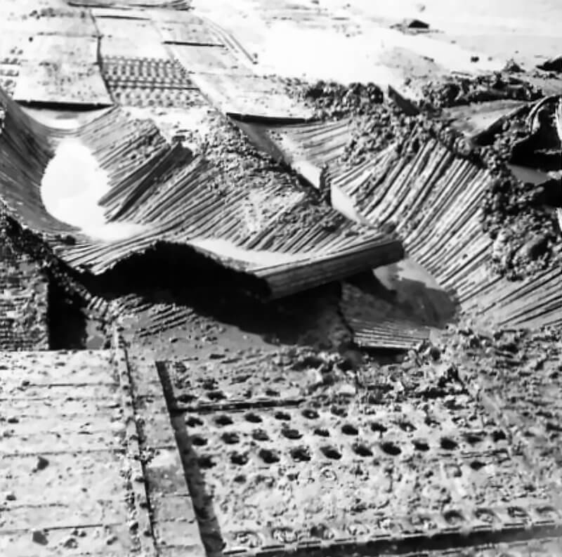 FLAIL TANKS (H 37418) Original wartime caption: Effect of Chruchill charge split top welding. Copyright: ý IWM. Original Source: http://www.iwm.org.uk/collections/item/object/205509210