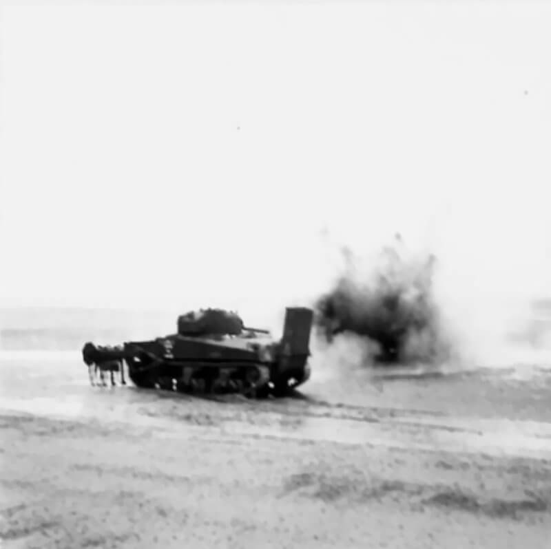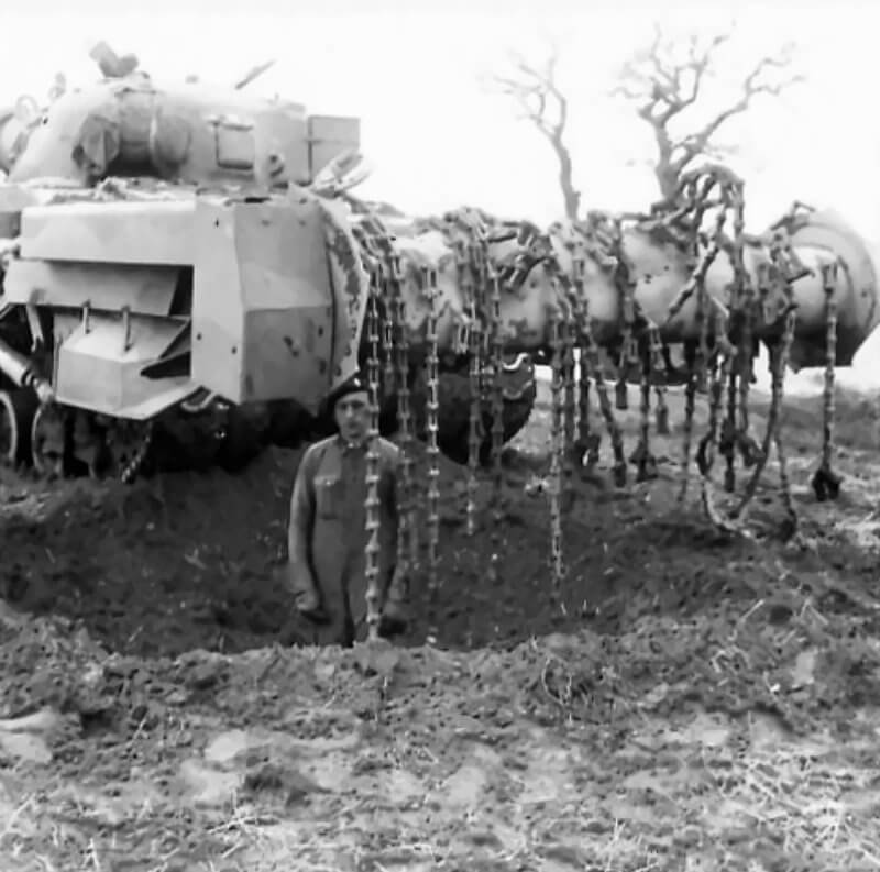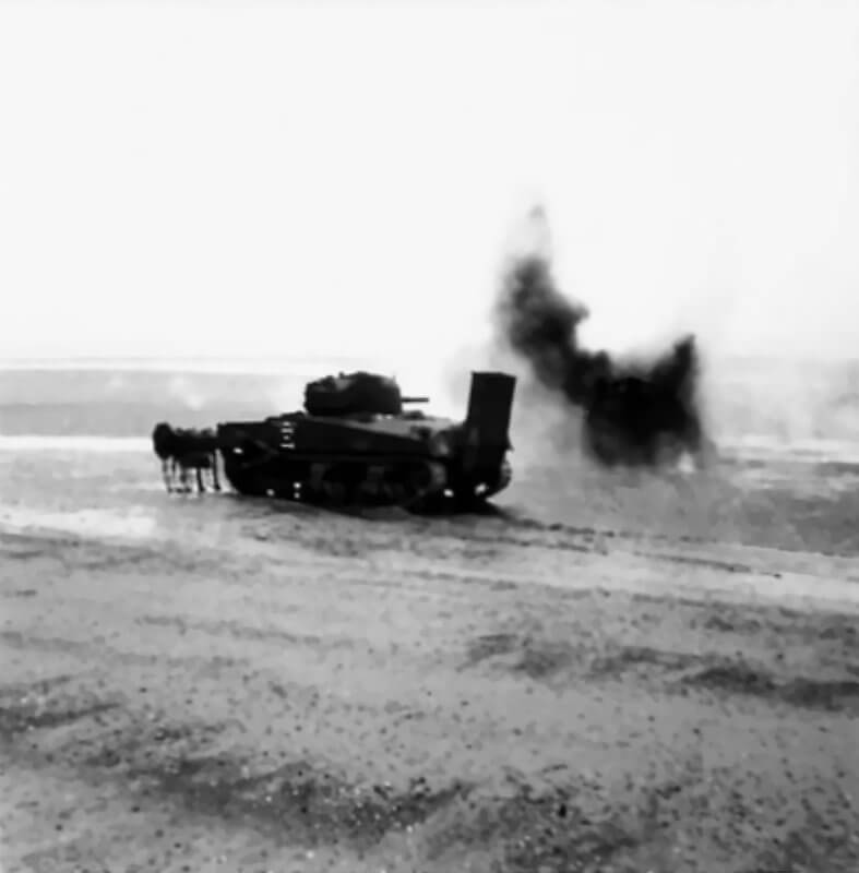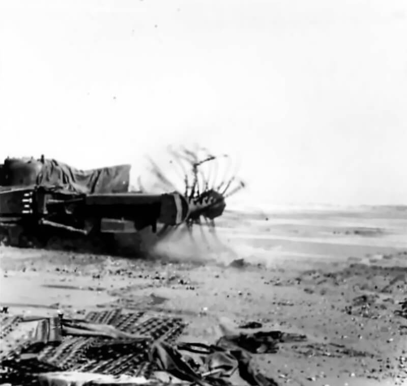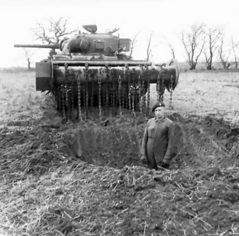 FLAIL TANKS (H 37460) Original wartime caption: Flail in operation Copyright: ý IWM. Original Source: http://www.iwm.org.uk/collections/item/object/205509250
