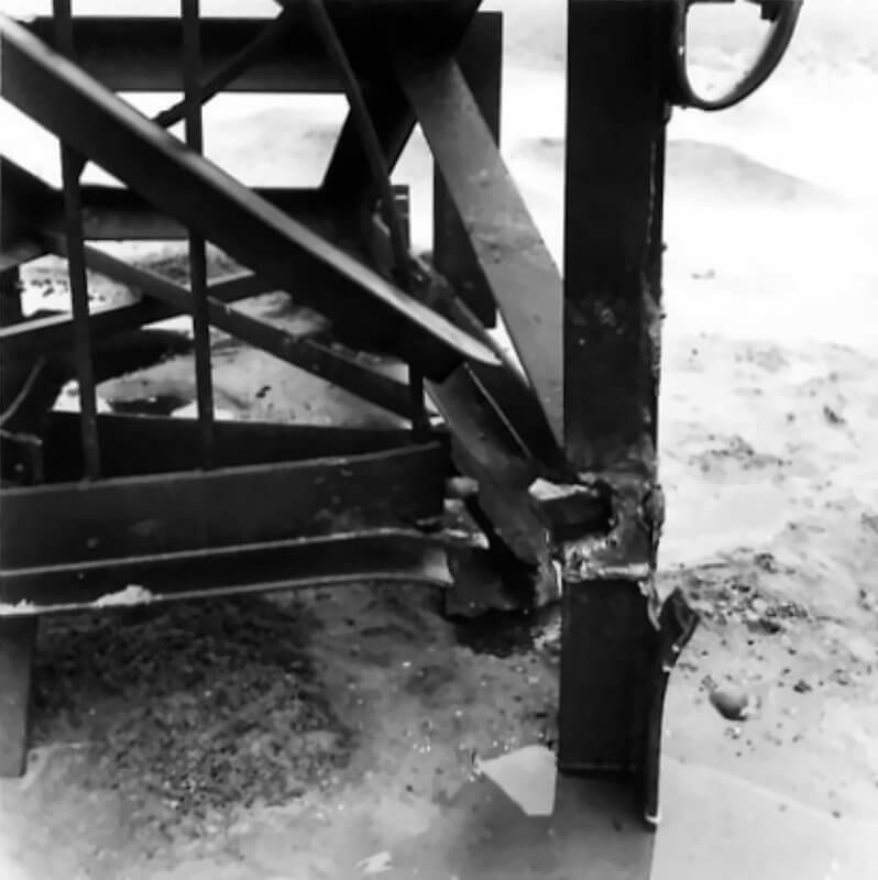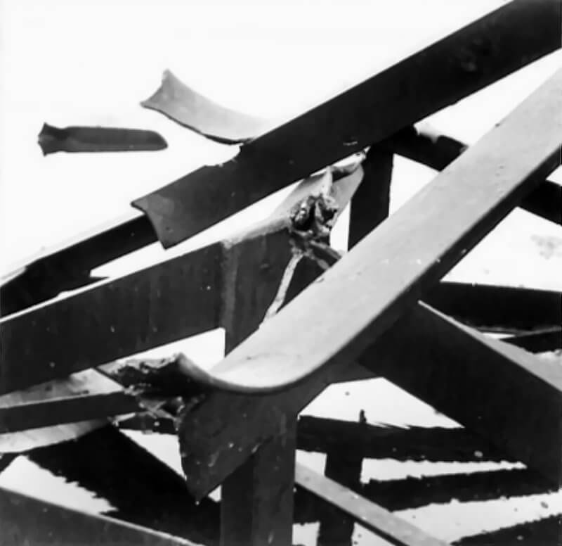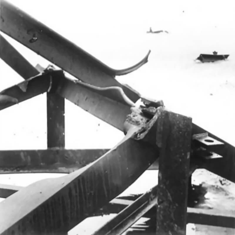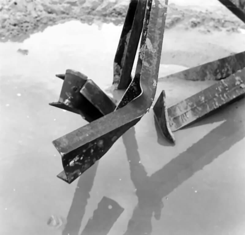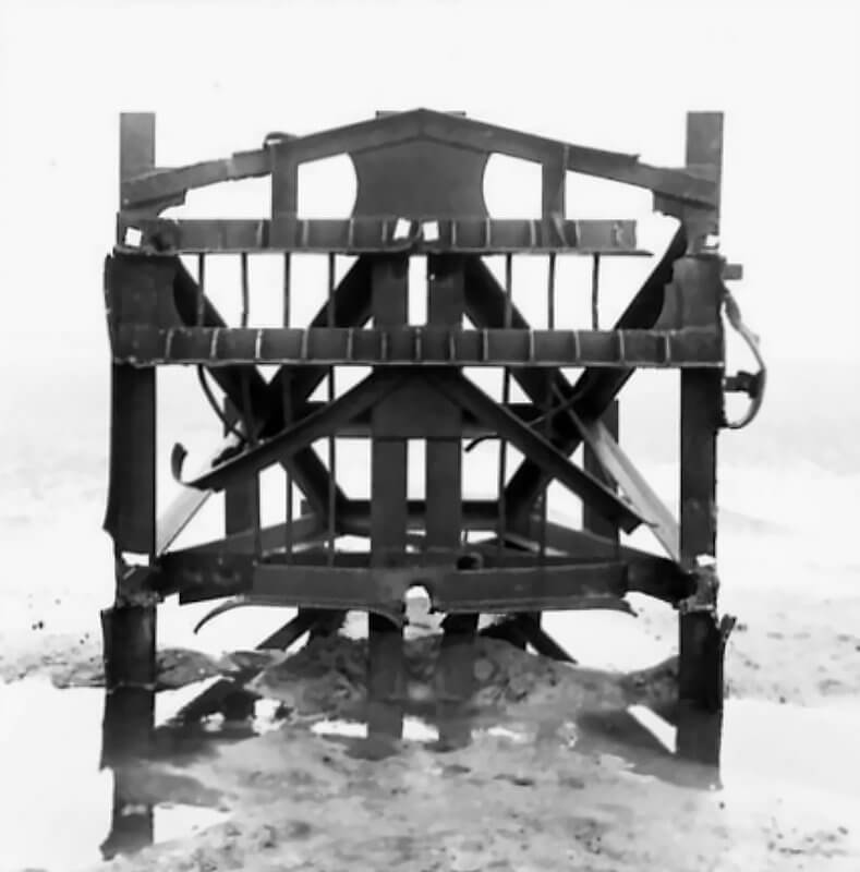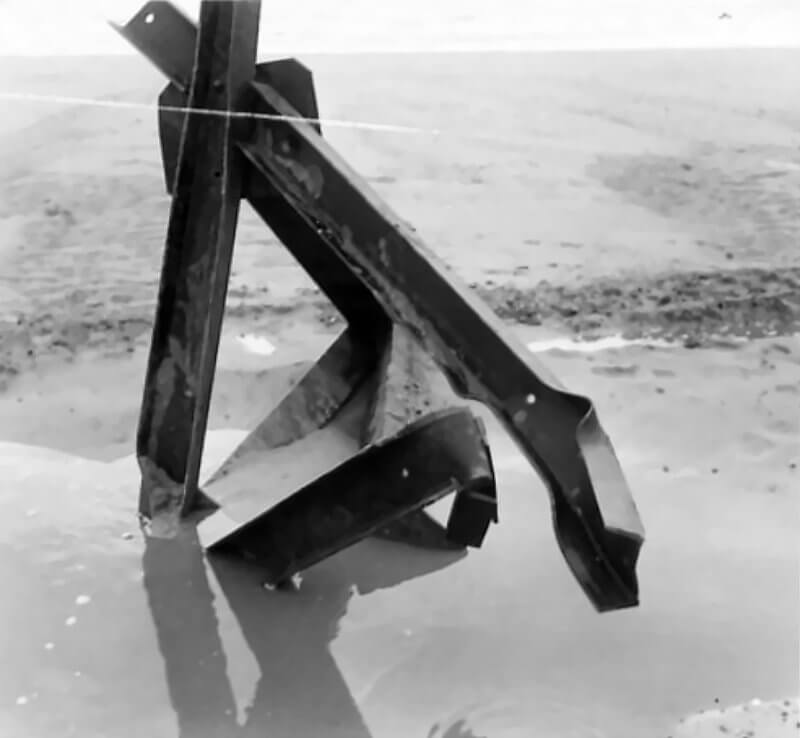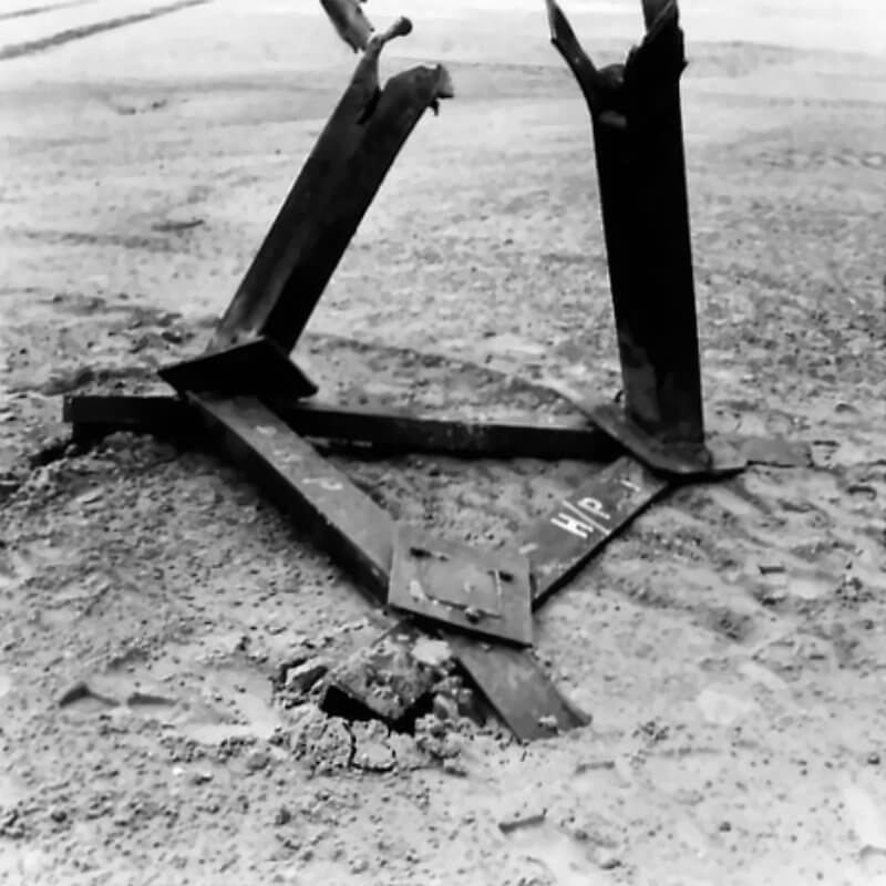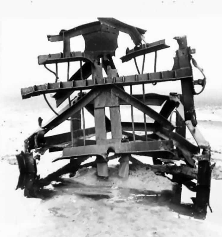 FLAIL TANKS (H 37422) Original wartime caption: 75 mm Shot at Tetrahedra result. Copyright: ý IWM. Original Source: http://www.iwm.org.uk/collections/item/object/205509214