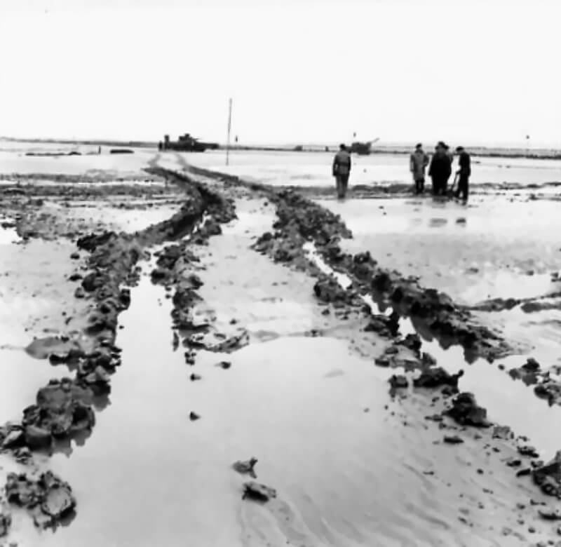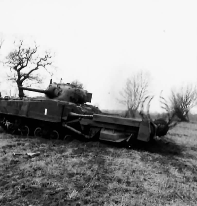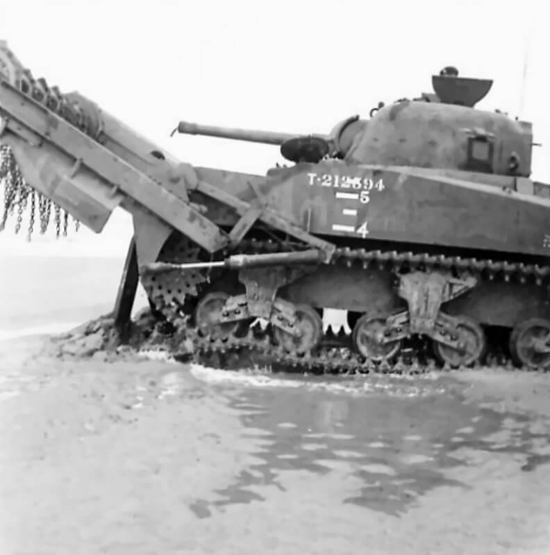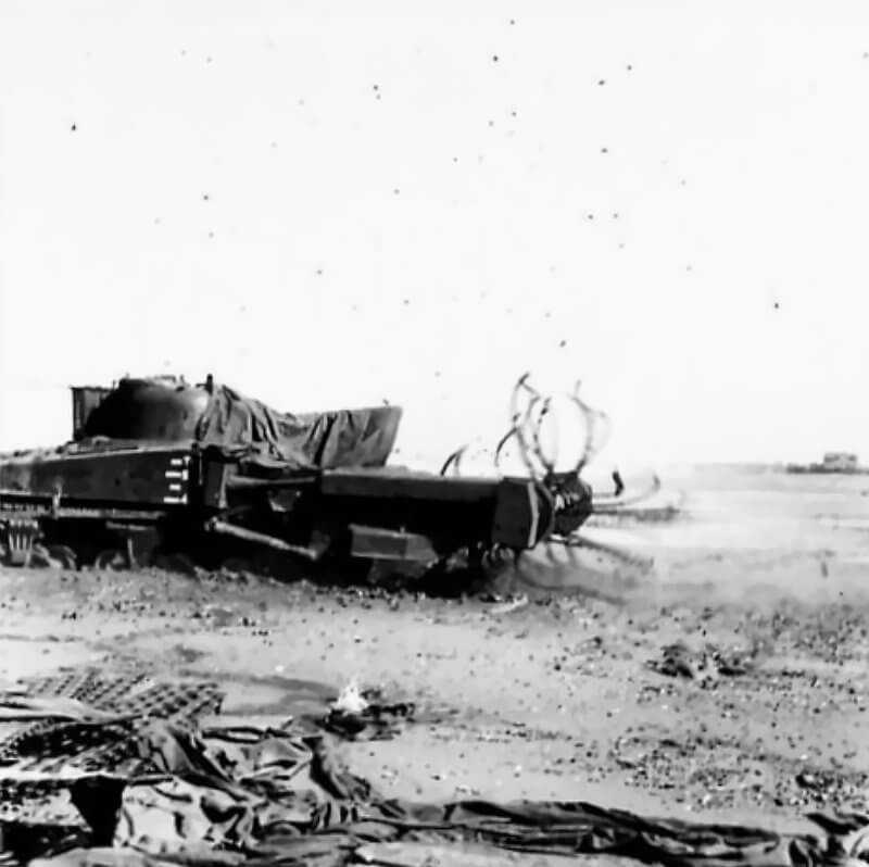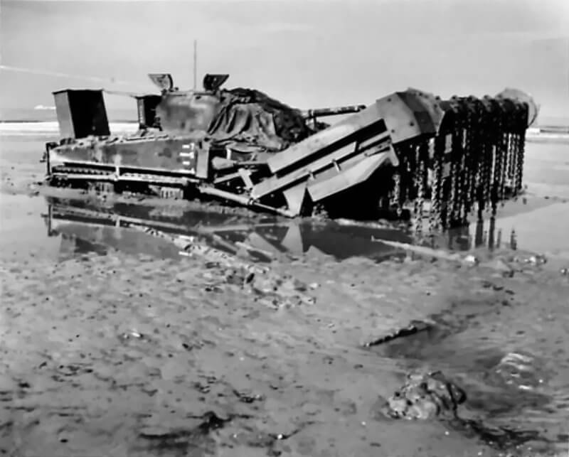 FLAIL TANKS (H 37459) Original wartime caption: Flail sunk. Copyright: ý IWM. Original Source: http://www.iwm.org.uk/collections/item/object/205509249