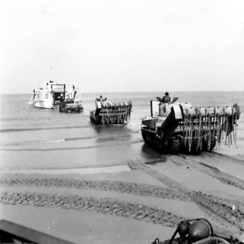 FLAIL TANKS (H 37426) Original wartime caption: Assault of L.C.T. and heavy tanks. Copyright: ý IWM. Original Source: http://www.iwm.org.uk/collections/item/object/205509218