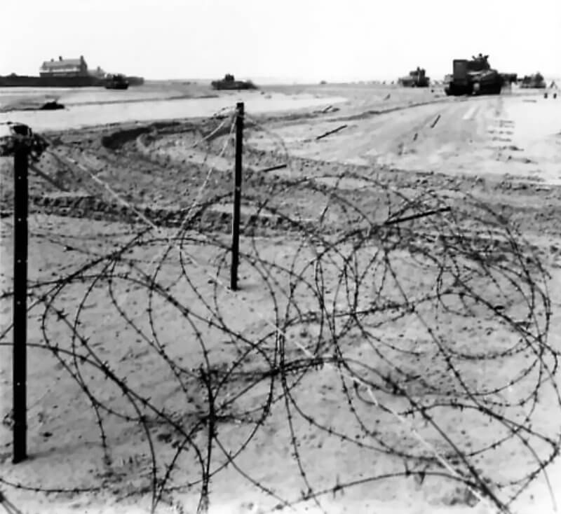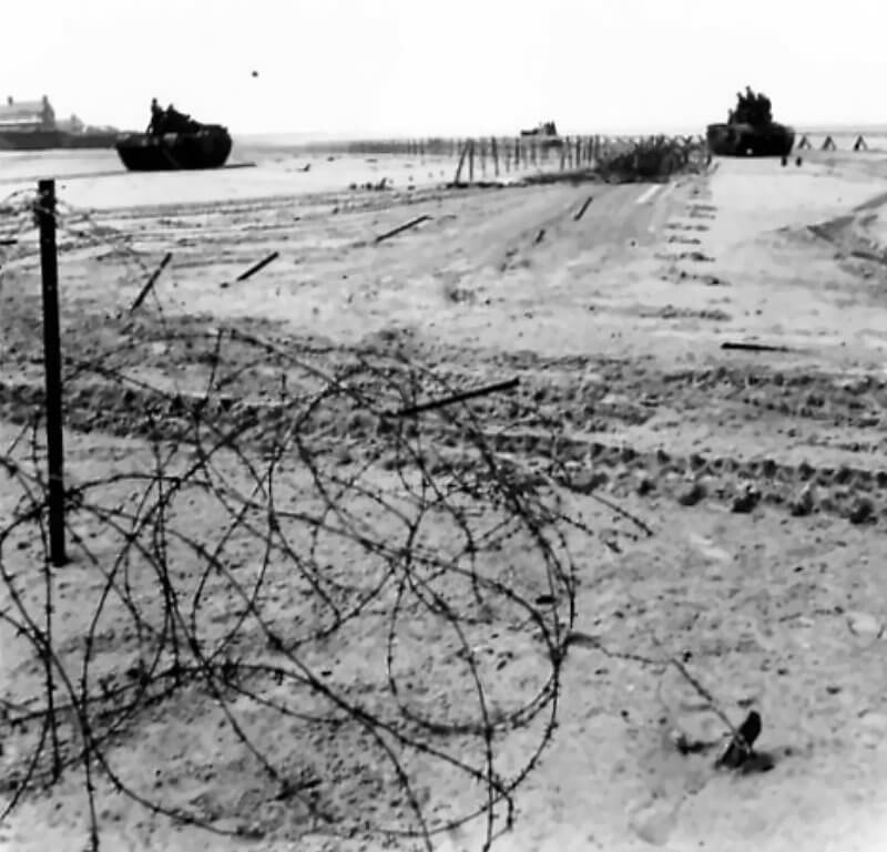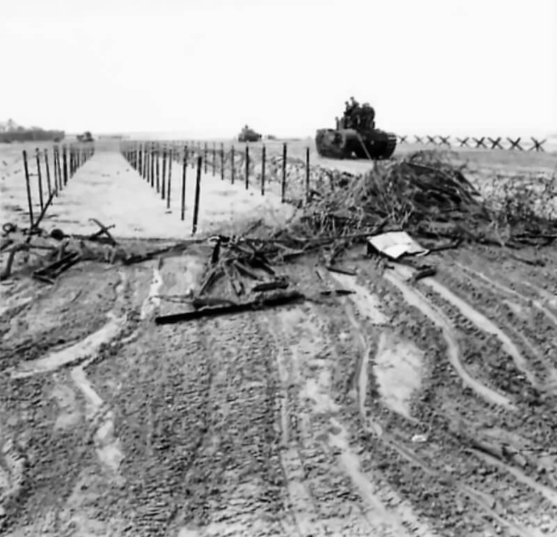 FLAIL TANKS (H 37435) Original wartime caption: Location of fence. Copyright: ý IWM. Original Source: http://www.iwm.org.uk/collections/item/object/205509225