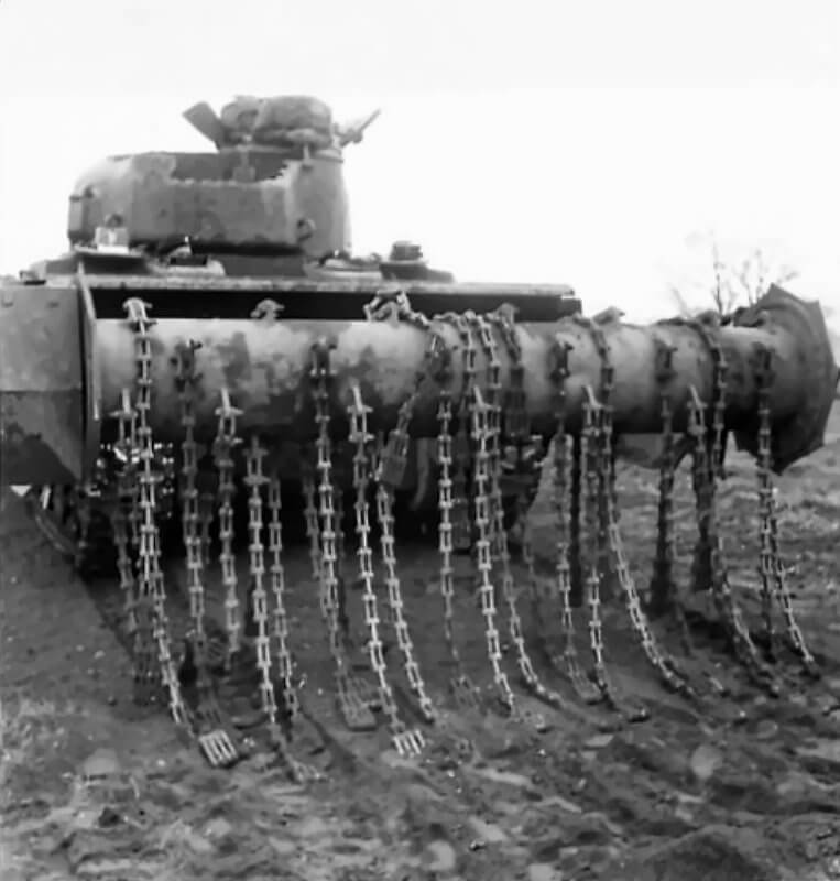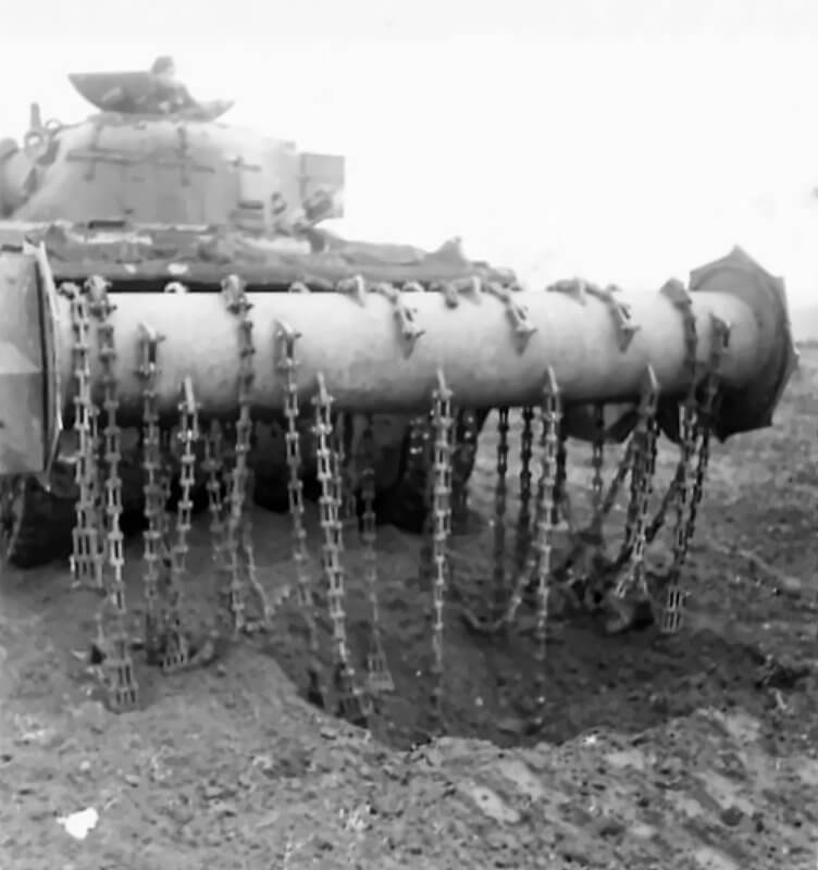 FLAIL TANKS (H 37453) Original wartime caption: 4th mine and flail Copyright: ý IWM. Original Source: http://www.iwm.org.uk/collections/item/object/205509243