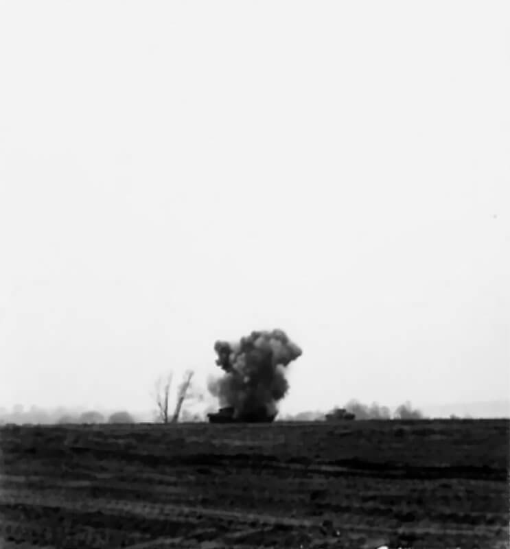 FLAIL TANKS (H 37446) Original wartime caption: Explosion of mine Copyright: ý IWM. Original Source: http://www.iwm.org.uk/collections/item/object/205509236
