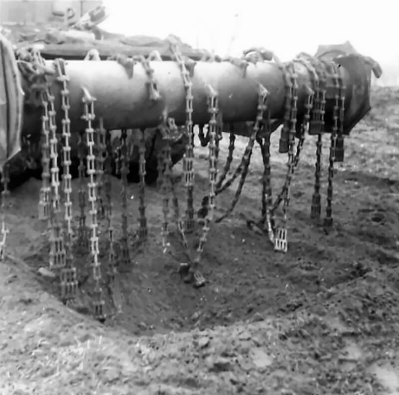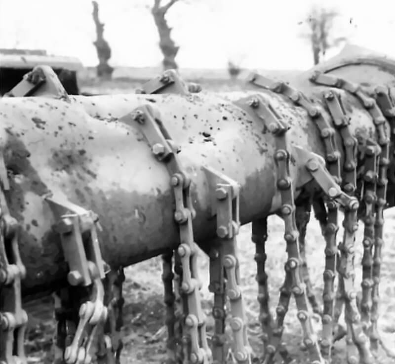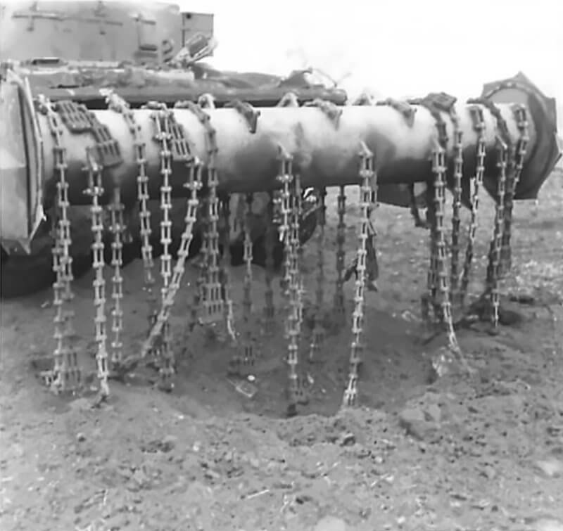 FLAIL TANKS (H 37447) Original wartime caption: Twisted and knotting on flail Copyright: ý IWM. Original Source: http://www.iwm.org.uk/collections/item/object/205509237