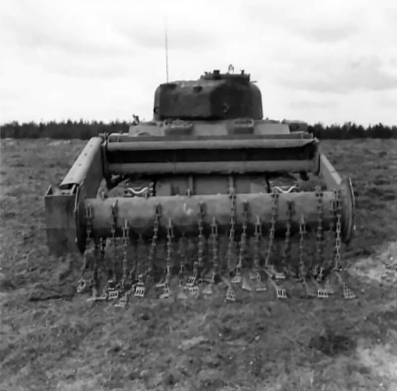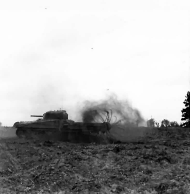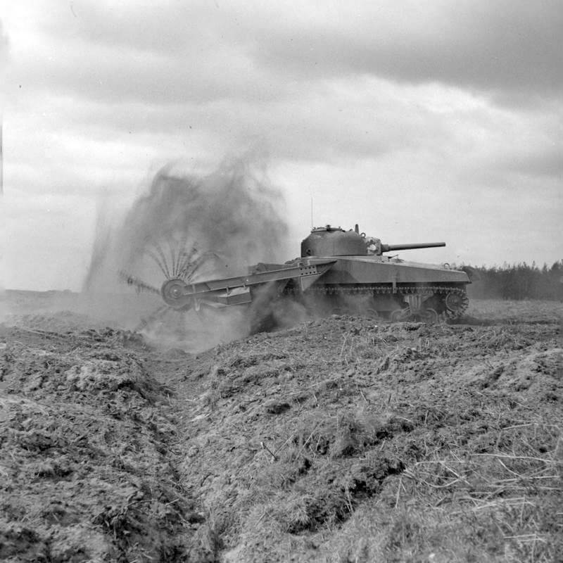 FLAIL TANKS (H 37460) Original wartime caption: Flail in operation Copyright: ý IWM. Original Source: http://www.iwm.org.uk/collections/item/object/205509250