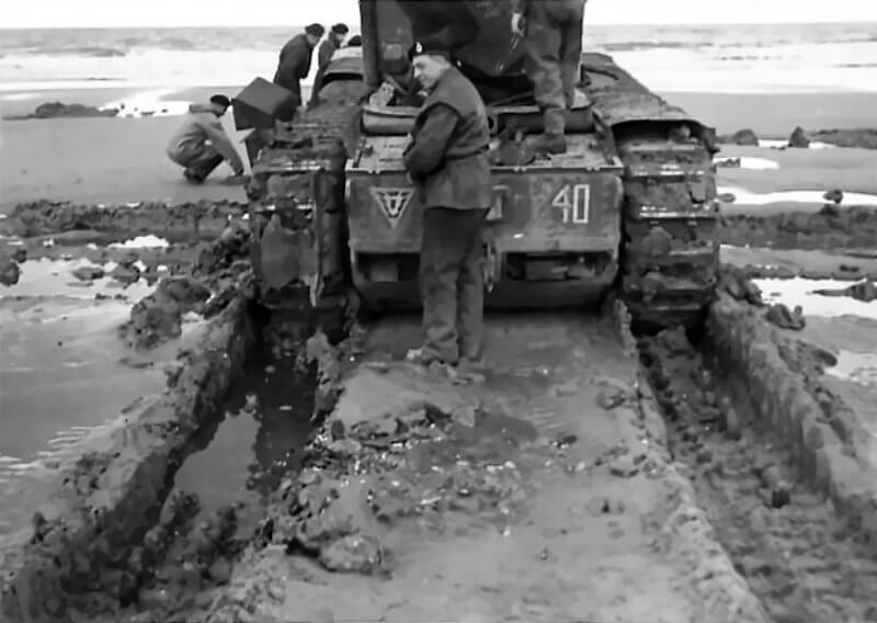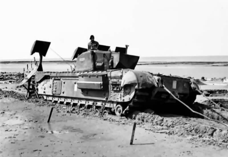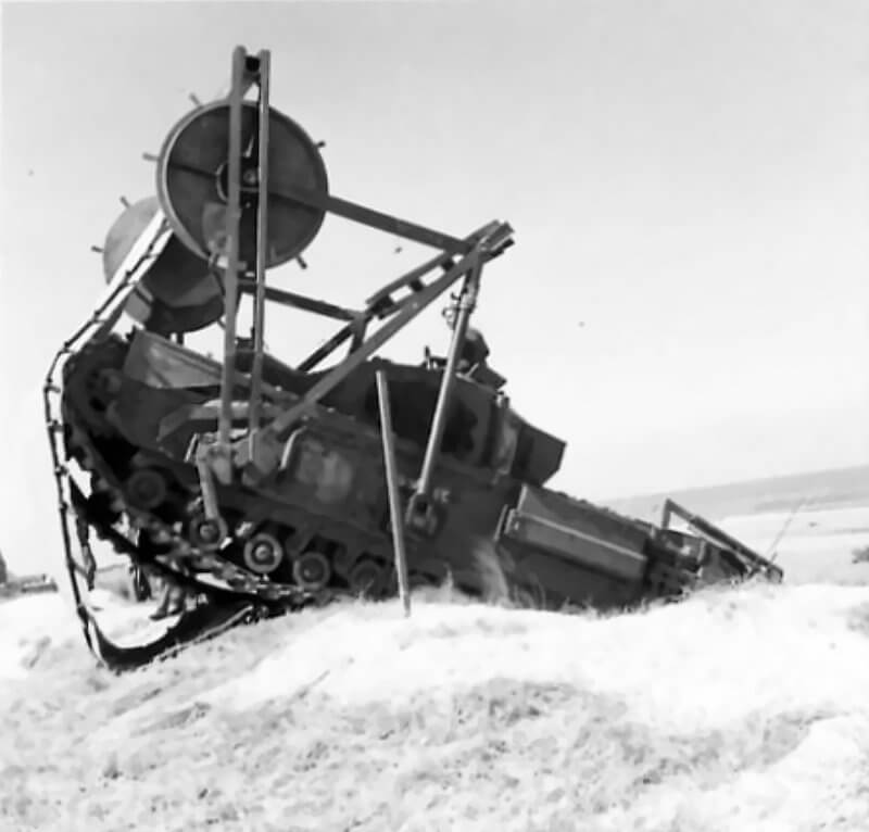 FLAIL TANKS (H 37459) Original wartime caption: Flail sunk. Copyright: ý IWM. Original Source: http://www.iwm.org.uk/collections/item/object/205509249