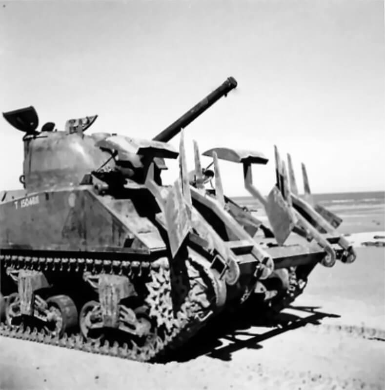 FLAIL TANKS (H 37426) Original wartime caption: Assault of L.C.T. and heavy tanks. Copyright: ý IWM. Original Source: http://www.iwm.org.uk/collections/item/object/205509218