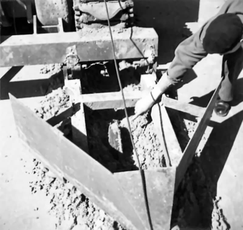 FLAIL TANKS (H 37468) Original wartime caption: The charge placed against concrete wall. Copyright: ý IWM. Original Source: http://www.iwm.org.uk/collections/item/object/205509257