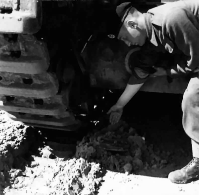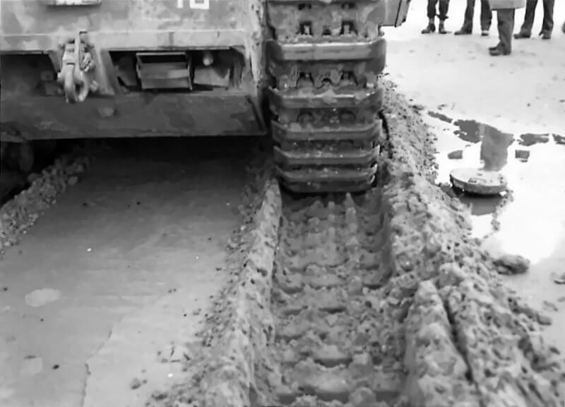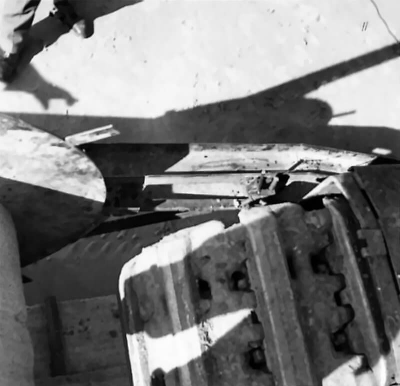 FLAIL TANKS (H 37455) Original wartime caption: Dent from tele mine. Copyright: ý IWM. Original Source: http://www.iwm.org.uk/collections/item/object/205509245