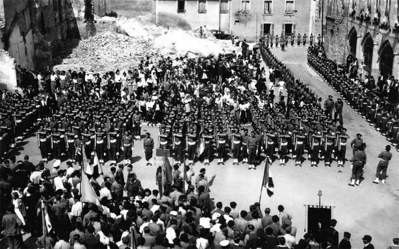 On the square, you can see the ruins of the abbey hotel and the Simoneau factory.