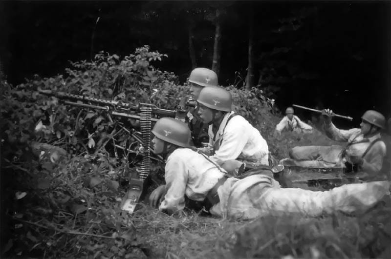 On March 26th, 1940, it is decided that three schwere MG-Halbzugs will jump forty-five minutes after the attack. All operate under Leutnant Helmut Ringler. Transport responsibility lies with I./KG zbV 172. The unit supports the bridgeheads at Veldwezelt, Vroenhoven, and Kanne.
