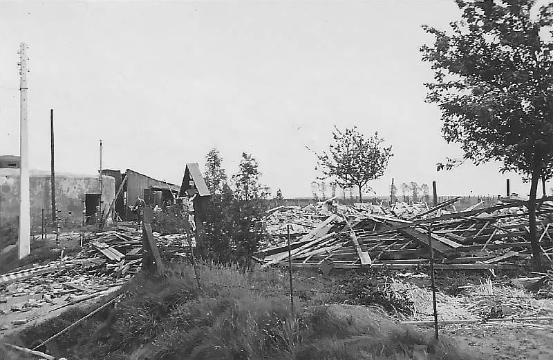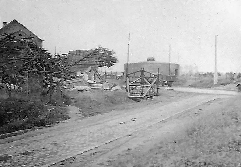 From the observation cupola, Vanhoof observes six German paratroopers. They are positioned against the wall of the Haesen house. Two machine guns open fire from the bunker but fail to hit their targets. The defenders lack the means to prevent the paratroopers from escaping the village. They rely on the Carabiniers to maintain fire from their trench positions. A flamethrower attack then begins against the bunker. Two explosions follow in quick succession. The first destroys Jan Nicolaes’s café and bicycle shop completely. The second is far more powerful and detonates directly at the bunker entrance.