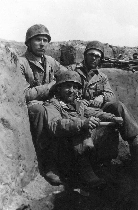 They shoot down the third Junker 87. It crashes near the trenches of Lieutenant Detiège’s men. The price is high. The machine gunners in the forward line die after being raked by fire from the guns of the first Junker 87. They endure on more attack of a Heinkel He 111. In the Heinkel He 111 attack they remain motionless to avoid being cleared from the trenches.