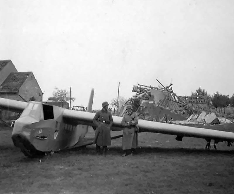 At least one glider is already hors de combat before reaching the ground. This occurs with the glider assigned to Squad 9. The squad is commanded by Unteroffizier Erich Rückriem and led during the landing by Oberjäger Helmut Stuhr. During the final approach, Belgian fire hits the aircraft. The left wing is damaged. The pilot suffers a head wound but retains control. He succeeds in landing the glider.