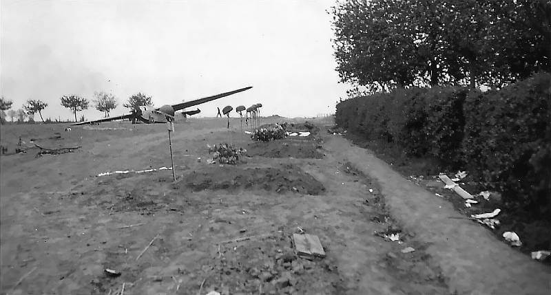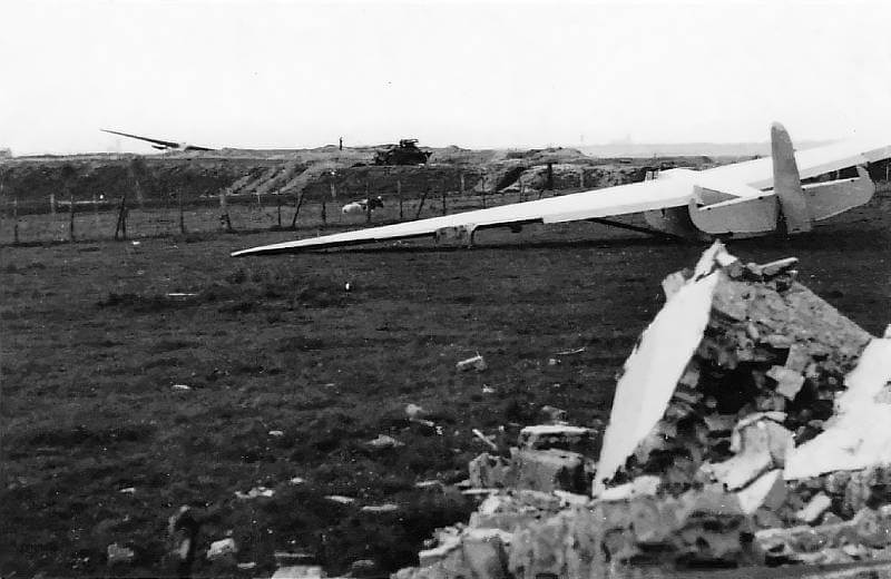 Three DFS 230 gliders land north of the Bilzerbaan and the bridge. One glider lands between Vandevelde’s trench and Rousseau’s position. Another passes so close it nearly strikes them and lands a dozen metres behind. Within seconds the situation becomes clear. Four or five figures in loose trousers and helmets emerge, carrying machine guns and grenades. The Belgians understand at once what it means. The Germans have arrived and war has begun. Vandevelde acts instinctively. He shouts for his men to fire.