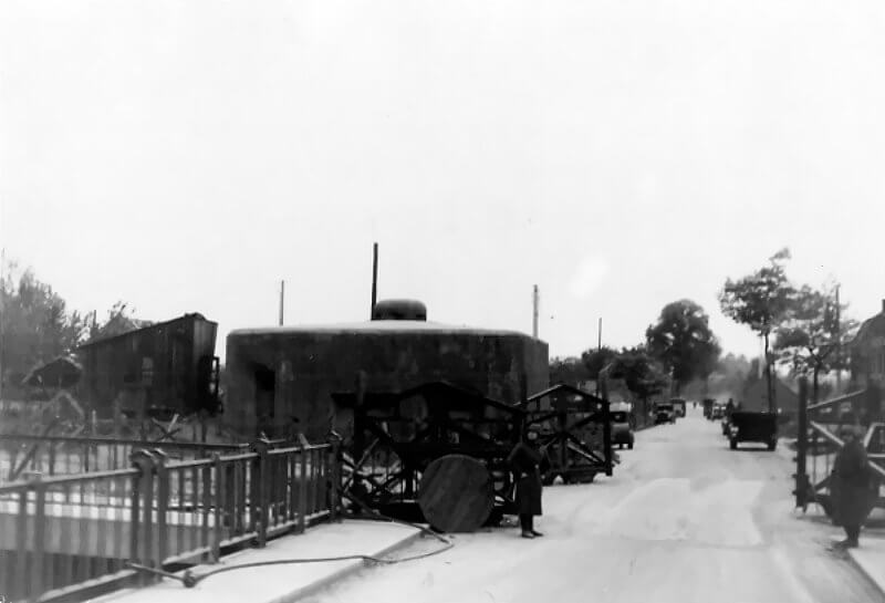 The Veldwezelt bridge forms part of the Albert Canal fortified system. The position blocks the direct axis from Maastricht into central Belgium. Its purpose is to deny the enemy a rapid canal crossing and to delay armoured forces advancing westward. The defence relies on permanent reinforced-concrete bunkers and casemates on the western bank. These works are integrated with bridge demolition charges. They are supported by field fortifications, infantry units, and artillery deployed in the surrounding area. The system combines fixed defences with mobile forces.