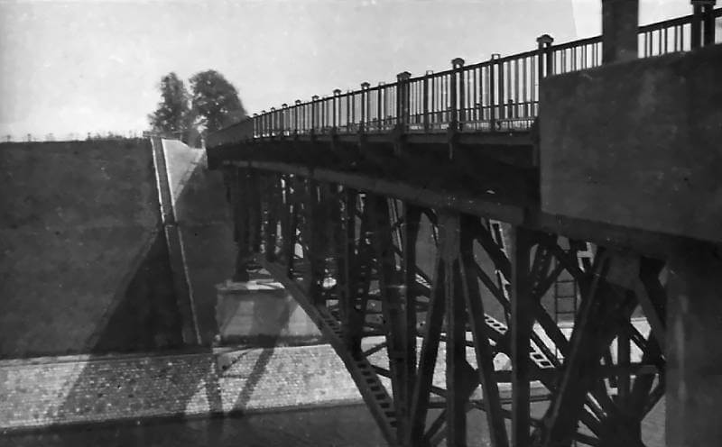 Vandevelde is taken prisoner. He has experienced fifteen hours of war. It is still Friday, May 10th, 1940, at 19:00. Vandevelde and van Tongerloo are taken to the Dutch border post. Dev is taken to Veldwezelt. They cross the bridge on foot. One hundred metres away Vandevelde sees the barges that trouble him earlier in the night. He is told their purpose. If, during an exercise, the bridge is accidentally demolished, the barges serve as pontoons for a replacement crossing.
