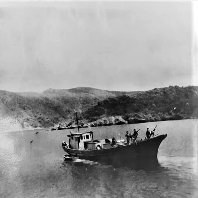 The combined British and Greek force is delivered in ten motor launches, as well as schooners and caïques of the Anglo-Hellenic Schooner Flotilla. Lieutenant-Colonel Tryfon Triantafillakos of the Sacred Squadron and part of Main Force navigates the Aegean Sea aboard Motor Launches (M.L.) 348, 351, 354, 359, and 386. The sea is particularly rough, with short, furious waves threatening their progress. They reach Cape Aghia-Marina, east of Symi’s port, at one in the morning. The wind intensifies, and foam lines the breakers. Scouts onshore since the previous day report no enemy patrols. Triantafillakos and his men land and begin their march towards the town.