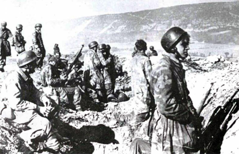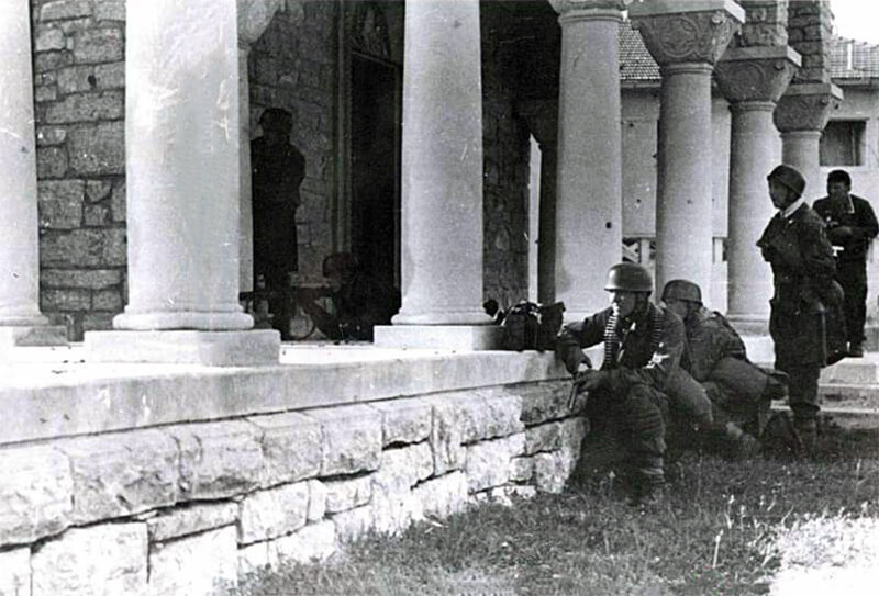 By now the focal point of the German defence is the cemetery situated on the hill of Schobić-Glavitsa. Concrete walls protect it from Kechmani and the pulp mill, with sappers creating loopholes in these barriers. Local residents were forced to dug trenches of full profiles with parapets on the field where the second wave of the landing had occurred. Stone crosses also served as cover for individual marksmen. The Germans now find themselves surrounded from all directions by four battalions of the 3rd Likes Brigade and the 3rd Dalmatian Battalion, which had arrived later.