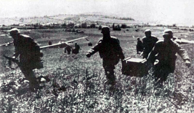 Parts of Gruppe Stürmer experience a different challenge, as their gliders land in a field just south of the Drvar cave. They came under fire from members of the Tito Escort Battalion positioned on the high ground in the vicinity of the cave.