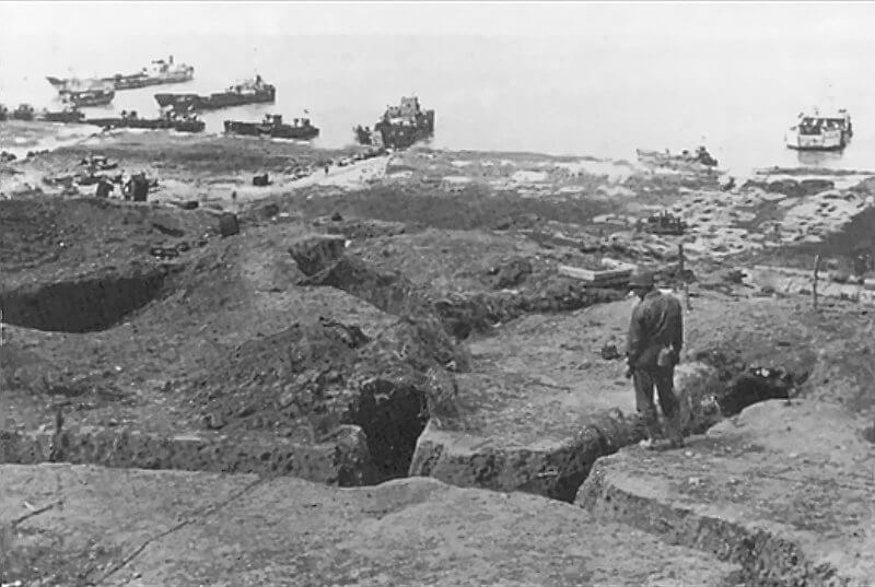 Supporting these artillerymen are Maschinengewehr-Trupps and Granatwerfer-Bedienungen, drawn from Grenadier-Regiment 726 or attached Festungspioniertruppen. These men operate MG 34 or MG 42 positions, flamethrowers, and mortars, and serve as riflemen within the trench network. Engineering work at the site is probably supported by Organisation Todt or Festungspionier units, who maintain the bunkers, wire obstacles, and minefields, and complete fortification tasks that are still underway as of early June.