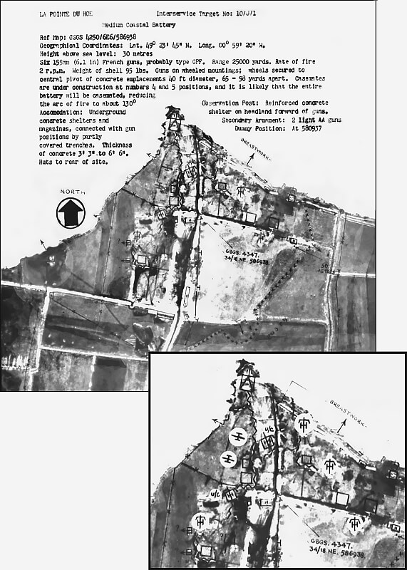To deceive Allied observers, the Germans place dummy gun barrels, wooden poles or telegraph posts, into the empty casemates and pits. Allied photo analysis detects irregularities, but the absence of conclusive evidence means the position remains a high-priority target. As a result, Allied planners continue to regard Pointe du Hoc as a serious threat.
