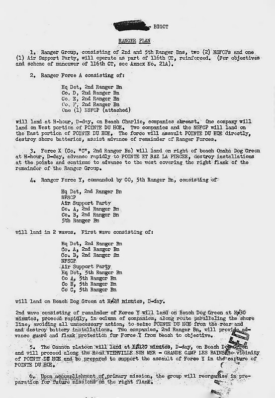 This concern prompts a final adjustment to the Ranger plan. On May 11th, 1944, as the 1st Infantry Division’s Neptune plan nears completion, Rudder’s Provisional Ranger Group is formally placed under the command of the 116th Regimental Combat Team. As a result, the Ranger operations are incorporated into the 116th Regimental Combat Team’s plan. At the same time, a minor naming change is adopted: Force X becomes Force B, and Force Y becomes Force C.