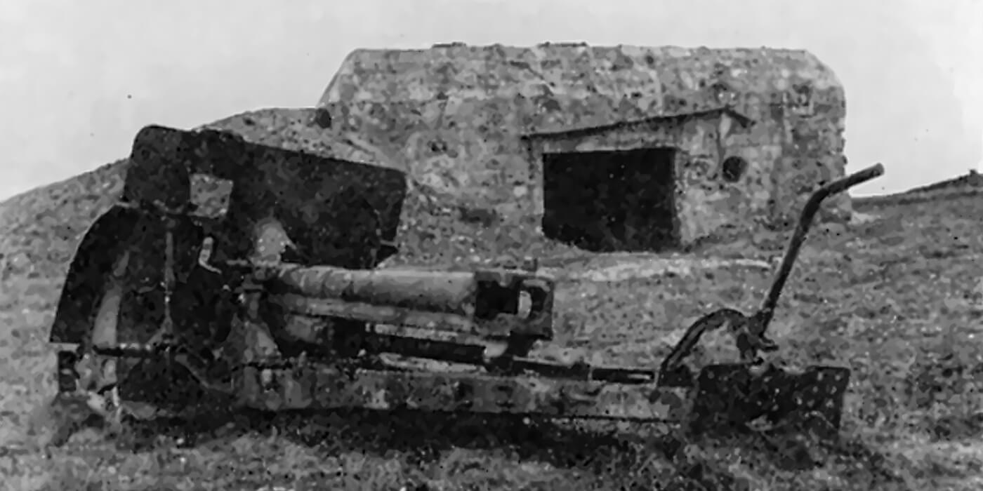 The Rangers shelter behind the half-tracks as German shells explode around them. The 75-millimetre gun on the lead vehicle fires back accurately whenever it halts, but the vehicles must stay mobile to survive. Supporting Rangers fire bazookas, Browning Automatic Rifles, and M1 rifles at the casemates, chipping concrete and wounding exposed gun crews. The open-air gunners are vulnerable, and casualties rise quickly. One gun is destroyed, another silenced when its ammunition runs out, and a third ceases fire when all its crew are wounded.