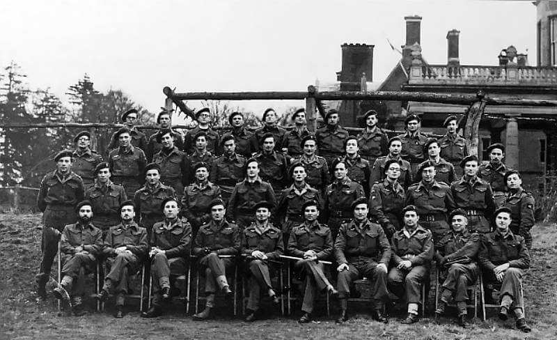 The Special Air Service Brigade that conducts operations in northwest Europe in 1945 comprises five regiments. The 1 and 2 Special Air Service are British. The 3 and 4 Special Air Service are French. The 5 Special Air Service is Belgian. In theory each regiment numbers approximately 600 men, organised into one headquarters company, one motorised company with four platoons of four jeeps each, and three combat companies. Each combat company comprises a command section and two combat sections of four groups each. The headquarters company includes a twelve-team radio section, a support section, a protection section, and service troops.