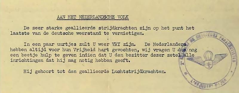 The 2nd SAS Regiment with 130 men and 18 jeeps will operate in the vicinity of western Gelderland.