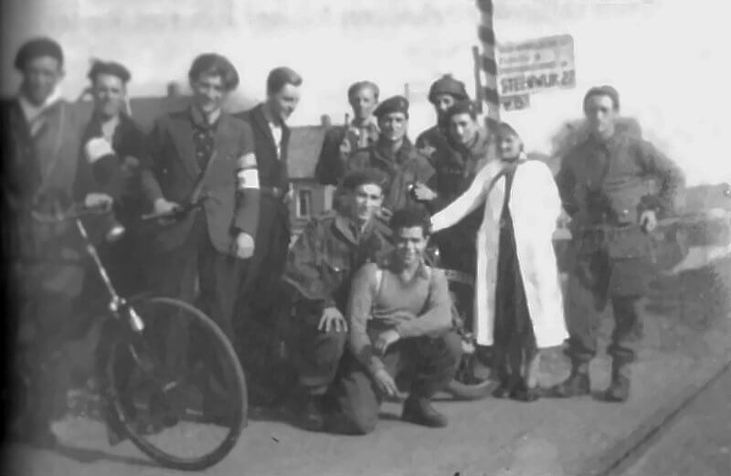 That afternoon, contact is made with the 12th Manitoba Dragoons, the reconnaissance regiment of the 2nd Canadian Infantry Division, which is conducting a reconnaissance mission toward Meppel from the direction of Hardenberg. Lieutenant Baratin confirms the link-up in a wireless message to main Special Air Service Headquarters at 15:45 on April 8th, 1945. The Canadian ground troops are still fighting for Zutphen at this time. The Manitobas are well ahead of the main force. While the armoured cars continue their reconnaissance, one scout car remains with the French paratroopers under Baratin to provide a wireless link.