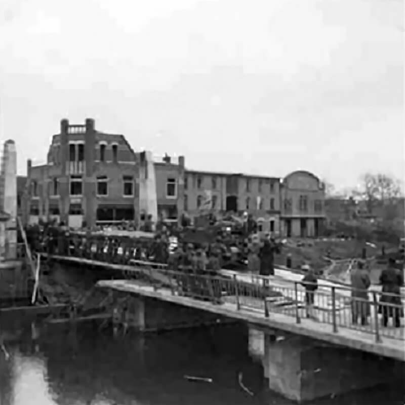 On the morning of April 13th, 1945, Ruysch van Dugteren moves to Assen with several men to support the resistance fighters operating inside the city. By Friday morning all German forces are driven out. The local resistance seizes two of the city’s bridges, including the Groninger Bridge, both vital for the Allied advance toward Groningen. In a remarkable piece of covert action, the Assen telephone exchange is also saved. A German officer tasked with its demolition is persuaded by the Dutch underground to abandon the assignment and is quietly waiting in civilian clothing when Canadian Field Security personnel arrive.