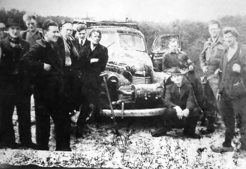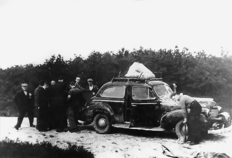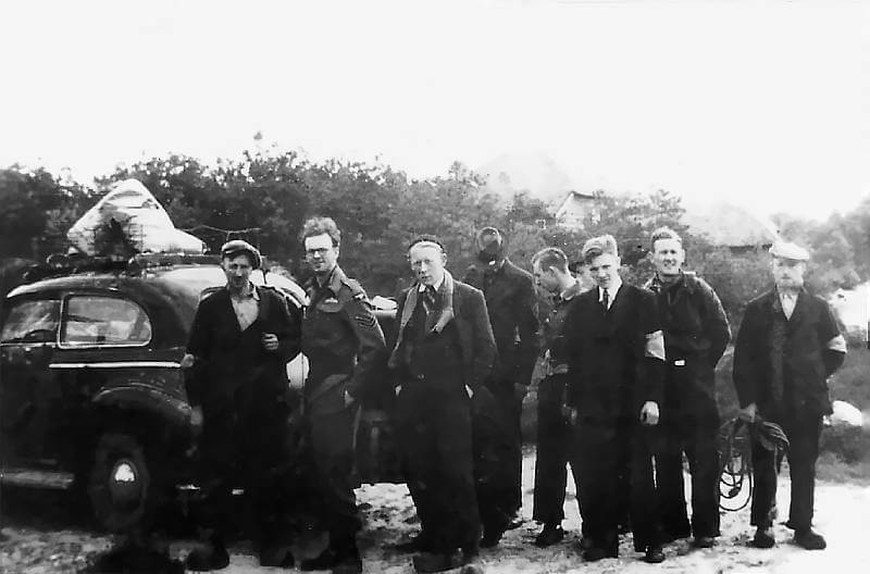 The group adopts a purely defensive posture given its lack of weapons, ammunition, and food. On April 10th, 1945, the decision is taken to move south to meet the approaching ground forces, leaving the two wounded men behind. The group reaches the Oranjekanaal but cannot cross. The bridges are guarded. An attempt to swim the canal is abandoned when a German challenge is shouted from the bank. A second attempt 500 metres further along draws immediate fire without warning. After a brief exchange the group withdraws to the forest. On April 12th, 1945, the group, including the two injured men who have been collected along the way, encounters the jeeps of Captain Mouillié’s group near the Werklust Farm on the Halerweg west of Elp. The jeeps are reconnoitring westward toward Hooghalen from the lock near the flax factory at Orvelte.