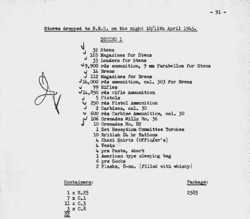 While the plan is being developed, Betbèze makes one more attempt to find his missing containers. He goes out again at dawn with four men and searches until 11:00 on April 8th, 1945, before finally locating them. They have been dropped after the last man exits the aircraft rather than mid-stick, causing them to land approximately four kilometres from where the paratroopers come down. This is a significant deviation from standard operating procedure, which is specifically designed to prevent exactly this outcome. Dutch civilians have already found the containers before the French and have helped themselves to most of the food. The weapons containers are intact, giving the attack force two additional Bren guns and spare ammunition. Betbèze and his men haul the containers back to the Witteveen base camp, arriving exhausted at 14:00.