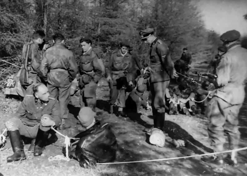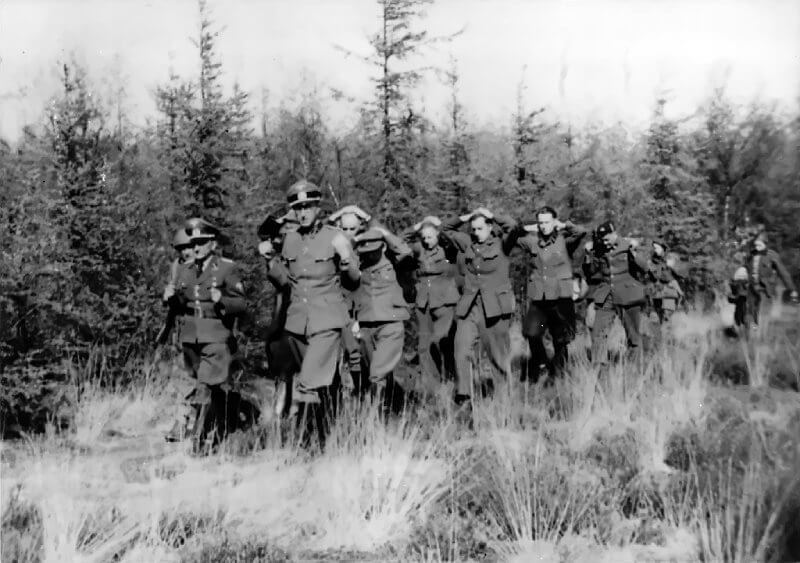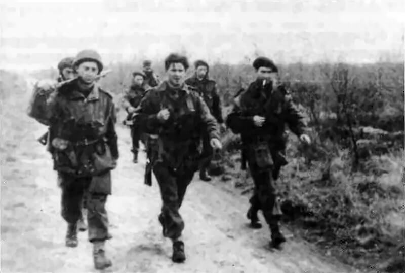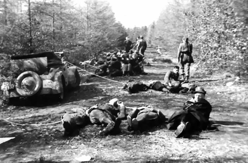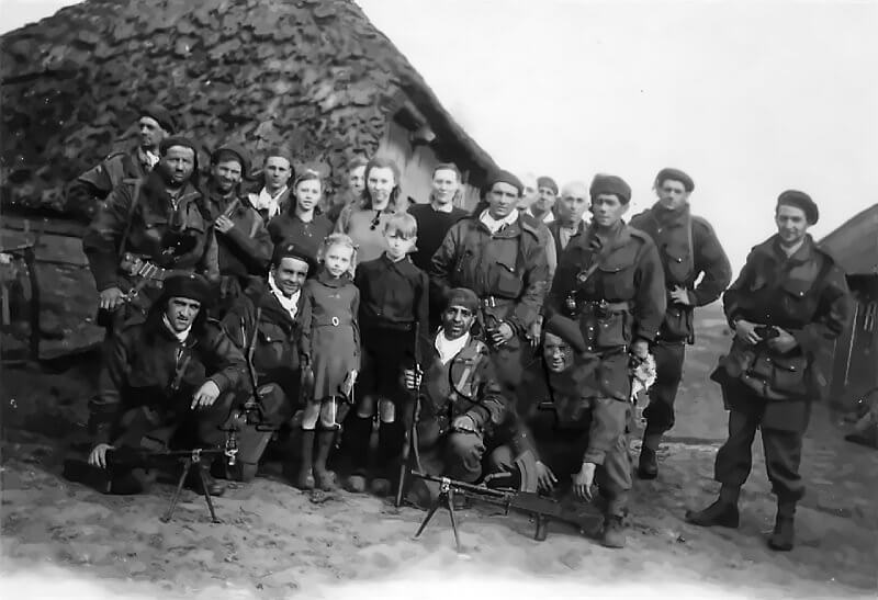On April 13th, 1945, the combined sticks of Gramond, Legrand, Stéphan, and Appriou, together with their 45 prisoners, are evacuated by the Canadians to the village of Rolde and from there transferred to Coevorden, where Colonel Prendergast has established his Tactical Special Forces headquarters. The French force has killed at least ten enemy soldiers and taken 45 prisoners in the Bois de Gieten operations. Two enemy vehicles are captured and six others destroyed.