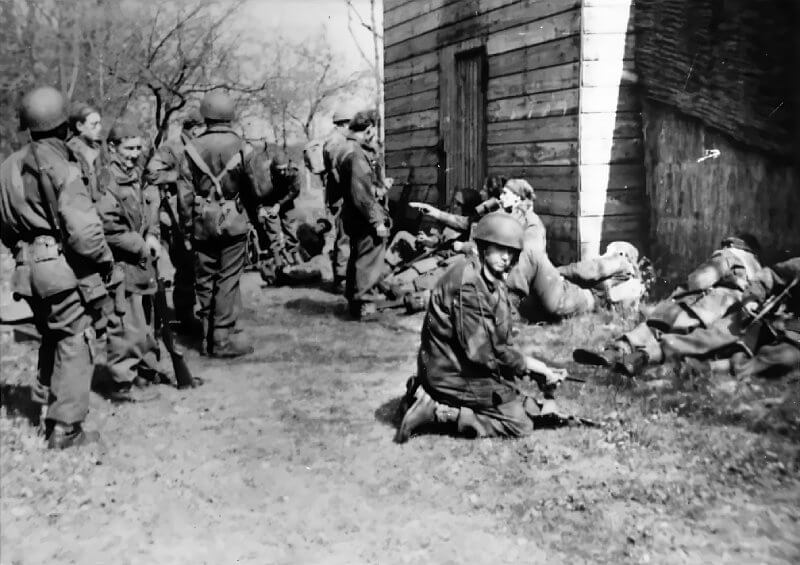 The approach march is long. The sticks take turns scouting. Despite moving in daylight, they reach the edge of the village without incident. The village is quiet. A German soldier crosses the street ahead of them without noticing anything.