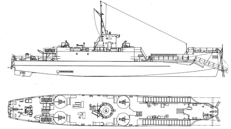 Britain separately designs and builds its own variant, the Landing Craft Infantry, Small, designated LCI(S) and known as the Fairmile Type H. This is a wooden-hulled vessel approximately 32 metres in length, carrying 102 troops. The wooden construction avoids further strain on Britain’s limited steel resources.
