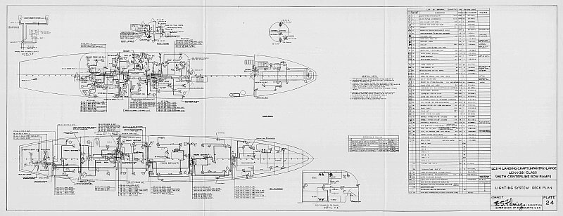 Two auxiliary Detroit Diesel 2-71 engines drive two 30-kilowatt, 120-volt direct current ship’s service generators, powering all electrical systems when the main engines are not in use. Approximately 9,000 Model 6-71 engines are used in quad configurations on Landing Craft Infantry, Large vessels during the war.