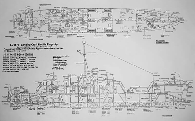 Forty-nine Landing Craft Infantry, Large vessels are converted to flotilla flagships. These receive additional officer quarters, expanded radio and radar equipment, and modified deckhouse arrangements. They see their combat debut at Okinawa but are judged too cramped and too slow for the role. Landing Craft Flotilla Flagship vessels transferred to the Royal Navy are redesignated Landing Craft Headquarters, designated LCH. Some are later redesignated Landing Craft Staff by the Royal Canadian Navy.