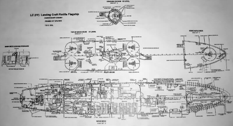 The improved LCI-351 sub-class follows in swift succession. Its first keel is laid on March 5th, 1943, the vessel is launched on April 8th, 1943, and commissioned on May 14th, 1943. A group of eight Landing Craft Infantry, Large vessels conducts sea trials by crossing from Norfolk, Virginia, to Bermuda in late 1942. The group weathers Force 4 winds during the crossing, demonstrating the type’s ocean-going capability.